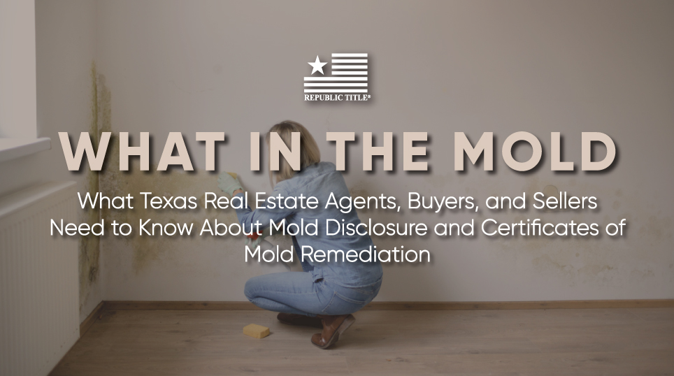 What in the Mold: What Texas Real Estate Agents, Buyers, and Sellers Need to Know About Mold Disclosure and Certificates of Mold Remediation Mold isn’t