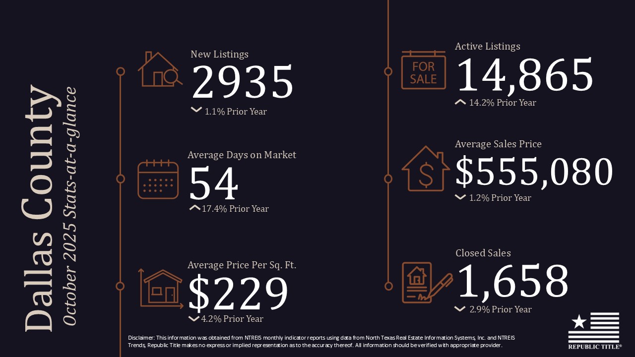 For more stats information, pdfs and graphics of our stats including detailed information by county, visit the Resources section on our website at DFW Area Real Estate Statistics | Republic Title of Texas.